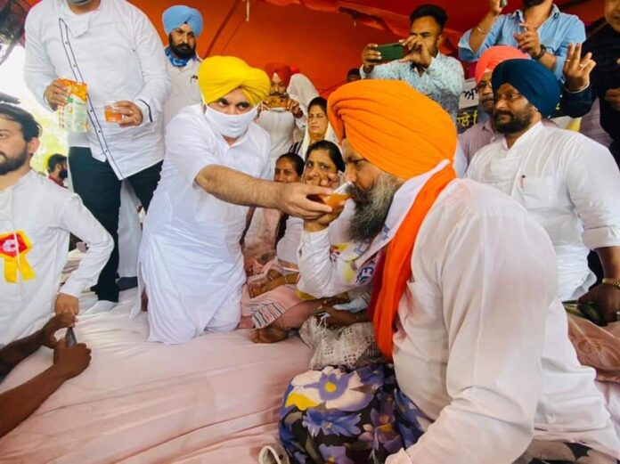 ਭਗਵੰਤ ਮਾਨ ਨੇ ਸਰਬਜੀਤ ਕੌਰ ਮਾਣੂੰਕੇ, ਮਨਵਿੰਦਰ ਸਿੰਘ ਗਿਆਸਪੁਰਾ ਨੂੰ ਜੂਸ ਪਿਲਾ ਕੇ ਭੁੱਖ ਹੜਤਾਲ ਖਤਮ ਕਰਵਾਈ