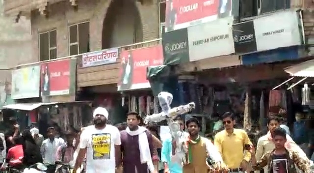 युवक कांग्रेस के द्वारा बढ़ती महंगाई के विरोध में पहले किला गेट से गोल मार्केट तक पद यात्रा निकली गई उसके बाद प्रधानमंत्री नरेंद्र मोदी का पुतला फूंका गया, कांग्रेस कार्यकर्ताओं ने भाजपा एवं प्रधानमंत्री नरेंद्र मोदी के खिलाफ जमकर नारेबाजी भी की। पुलिस ने जब रोकने का प्रयास किया और कार्यकर्ता पुलिस से भी उलझते दिखाई दिए। मगर पुलिस के प्रयास विफल रहे और पुलिस द्वारा प्रर्दशनकारियों को रोकना महज एक आडम्बर लग रहा था इस अवसर पर कांग्रेस के युवा नेता शिवम सेंथिया राहुल सिंह कुशवाह सहित कई कार्यकर्ता मौजूद रहे।वाइट: शिवम सेंथिया कांग्रेस नेता। वाइट: राहुल कुशवाह कांग्रेसी नेता।