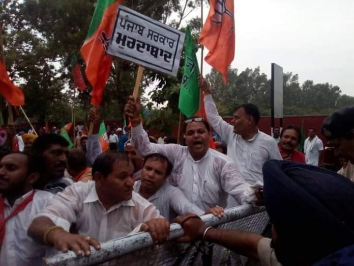 का नाम नही ले रही कांग्रेस ने सिर्फ एस, सी समाज को वोटबैंक ही समझा पर अब एस, सी समाज को यह बात समझ में आ गयी हैं जानकारी देते पंजाब प्रवक्ता दीपक बावा ने कहा कि पंजाब भाजपा अनुसूचित जाति मोर्चा ने जोरदार प्रदर्शन किया है पुलिस की और से वाटर कैनन से पानी की बौछारै की गई और बल प्रयोग किया गया जिसमें कई कार्यकर्ता घायल है जिसपर पंजाव प्रवक्ता दीपक बावा ने गहरा दुख प्रकट किया और ईश्वर से उनके जल्द ठीक होने की दुआ की पंजाब प्रवक्ता दीपक बावा ने कहा कि पंजाब में जंगलराज हो गया है अपने हकों के लिये आवाज उठाने पर ये सजा मिली है पंजाब की मुख्यमंत्री कैप्टन अमरिंदर सिंह को इस्तीफा दे देना चाहिए क्योंकि वो सरकार चलाने में सक्षम नही है जानकारी देते पंजाब प्रवक्ता दीपक बावा ने कहा कि इस रोष प्रदर्शन में पंजाब भाजपा के प्रधान अश्वनी शर्मा जी महामंत्री सुभाष शर्मा दयाल सिंह सोढ़ी , संगठन मंत्री दिनेश शर्मा ,महासचिव जीवन गुप्ता ,मोर्चा के प्रभारी व पंजाब भाजपा के उपप्रधान राकेश गिल ,राजेश बाघा पंजाब भाजपा के कैशियर गुरदेव शर्मा देबी जी और पंजाब भाजपा अनुसूचित जाति मोर्चा के सैकड़ो कार्यकर्ताओ ने अपना रोष व्यक्त किया इस अवसर पर मोर्चा के दोनों महामंत्री व मोहित भारद्वाज, रांझा बख्शी, और कार्यकर्ता हाज़िर हुए