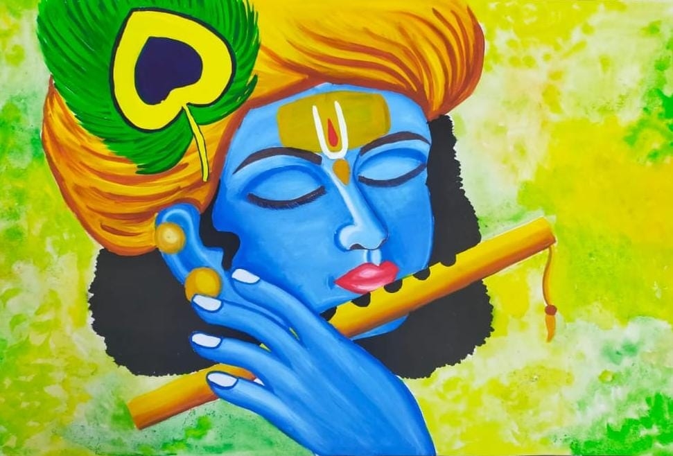 ਇਲਾਵਾ ਕੁਝ ਵੀ ਸੋਚਣ ਦਾ ਸਮਾਂ ਨਹੀਂ ਹੁੰਦਾ ਹੈ ਪਰ ਕਈ ਵੇਰ ਸਾਨੂੰ ਕੁਝ ਗੱਲਾਂ ਅਚੰਭਤ ਵੀ ਕਰਦੀਆਂ ਹਨ ਅੱਜ ਜਨਮ ਅਸ਼ਟਮੀ ਦੇ ਸ਼ੁਭ ਦਿਹਾੜੇ ਤੇ ਭਗਵਾਨ ਸ੍ਰੀ ਕ੍ਰਿਸ਼ਨ ਜੀ ਦੀ ਜਿਹੜੀ ਪੇਂਟਿੰਗ ਤੁਸੀਂ ਦੇਖ ਰਹੇ ਹੋ ਇਹ ਪੇਂਟਿੰਗ ਬਣਾਈ ਹੈ ਵੰਸ਼ਿਕਾ ਸਪੁੱਤਰੀ ਸ੍ਰੀ ਚੰਦਰ ਮੋਹਨ ਜੀ ਨੇ ਜੋ ਕਿ ਸੇਂਟ ਥੋਮਸ ਸਕੂਲ ਦੀ ਗਿਆਰਵੀਂ ਕਲਾਸ ਦੀ ਮੈਡੀਕਲ ਸਿੱਖਿਆ ਦੀ ਵਿਦਿਆਰਥਣ ਹੈ ਭਗਵਾਨ ਸ੍ਰੀ ਕ੍ਰਿਸ਼ਨ ਜੀ ਦੇ ਬੰਸੀ ਵਜਾਉਂਦੇ ਬਾਲ ਸਵਰੂਪ ਨੂੰ ਬਹੁਤ ਹੀ ਖ਼ੂਬਸੂਰਤੀ ਦੇ ਨਾਲ ਸਿਰਜਿਆ ਹੈ ਇਸ ਪੇਂਟਿੰਗ ਵਿੱਚ ਸ਼ਾਂਤ ਸੁਭਾਅ ਦੇ ਮਾਲਕ ਭਗਵਾਨ ਸ੍ਰੀਕ੍ਰਿਸ਼ਨ ਜੀਹਦਾ ਬੰਸੀ ਦੀ ਧੁਨ ਵਿੱਚ ਮਸਤ ਹੋ ਕੇ ਬੰਸੀ ਵਜਾਉਣਾ ਬੇਟੀ ਵੰਸ਼ਿਕਾ ਦੁਆਰਾ ਬਹੁਤ ਹੀ ਸੋਹਣਾ ਚਿਤਰਣ ਹੈ ਬੈਕਗ੍ਰਾਊਂਡ ਚ ਹਰਿਆਲੀ ਦਿਖਾਉਣਾ ਬਹੁਤ ਹੀ ਸੁੰਦਰ ਲੱਗ ਰਿਹਾ ਹੈ ਸਿਰ ਉੱਤੇ ਗਵਾਲਿਆਂ ਵਾਲੀ ਪੱਗੜੀ ਮੋਰ ਪੰਖ ਦੇ ਨਾਲ ਸੁਸ਼ੋਭਿਤ ਹੈ ਭਖਦੇ ਹੋਇਆ ਮੱਥਾ ਅਤੇ ਗੁਲਾਬੀ ਹੌਟ ਬਹੁਤ ਹੀ ਸੁੰਦਰ ਪ੍ਰਭਾਵ ਛੱਡਦਾ ਹੈ ਕੁਲ ਮਿਲਾ ਕੇ ਭਗਵਾਨ ਸ੍ਰੀ ਕ੍ਰਿਸ਼ਨ ਦੀ ਬਾਲ ਅਵਸਥਾ ਦੀ ਇਹ ਪੇਂਟਿੰਗ ਬਹੁਤ ਹੀ ਦਿਲ ਖਿੱਚਵੀਂ ਹੈ