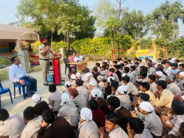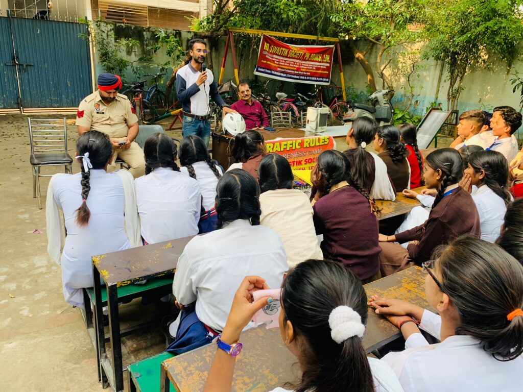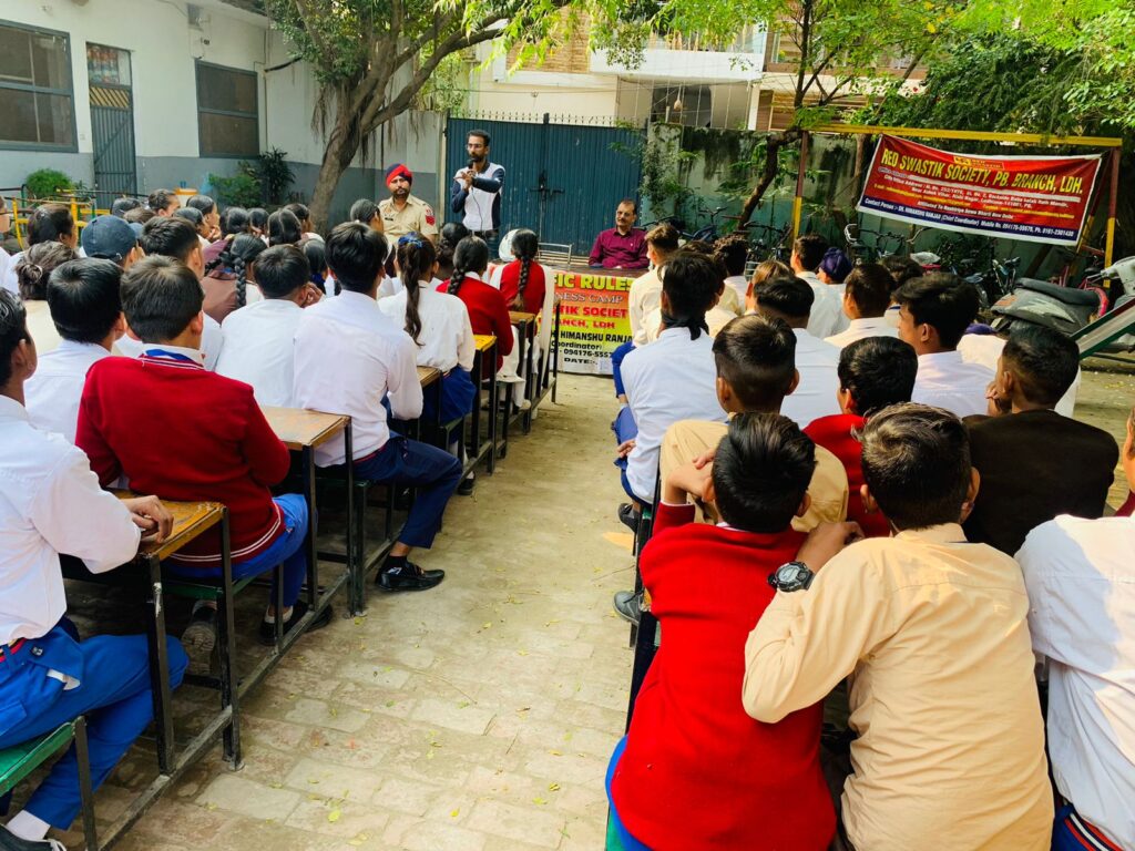 Ludhiana ( Dainik Punjab News Bereau ) Red swastik society pb branch LDH organised the traffic rules awareness camp and cyber crime prevention program at sri lal chand bhatia model se secondary school BANK colony Haibowal Kalan LDH