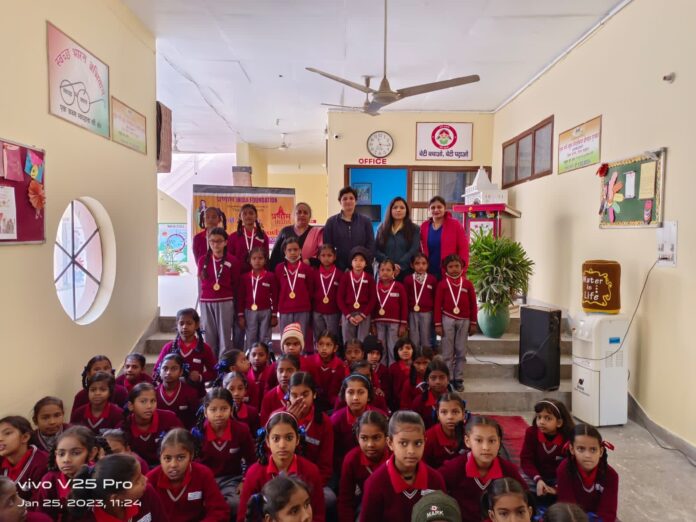 राजेश कुमार (चण्डीगढ) : प्रणाम इंडिया फाउंडेशन ने गवर्नमेंट मॉडल संस्कृत प्राइमरी स्कूल की छात्राओं के साथ मिलकर राष्ट्रीय बालिका दिवस मनाया। इस मौक़े पर प्रणाम इंडिया फाउंडेशन की फाउंडर ,समाज सेविका व मश्हूर मॉडल शालू गुप्ता ने लड़कियों को गुड टच और बैड टच के बारे में जानकारी दी और बताया कि देश में हर साल 24 जनवरी को राष्ट्रीय बालिका दिवस मनाया जाता है। इस दिन लोगों को लड़कियों के प्रति फैली गलत अवधारणाओं के प्रति जागरूक किया जाता है। नेशनल गर्ल चाइल्ड डे की शुरुआत 2008 में महिला एवं बाल विकास मंत्रालय के जरिए की गई थी ताकी लोगों को बच्चियों के अधिकारों के प्रति जागरूक किया जा सके। इस समारोह में पतंजलि की तरफ़ से श्रीमती पायल ने सभी बच्चों को योगा का महत्व बताया और योगा भी सिखाया। इस मौक़े पर स्कूल के प्रिंसिपल श्री जितेंद्र और सभी टीचर भी उपस्थित थे। स्कूल द्वारा चुनी गई 10 छात्राओं को प्रणाम इंडिया फाउंडेशन और प्रिंसिपल ने मेडल से सम्मानित किया।